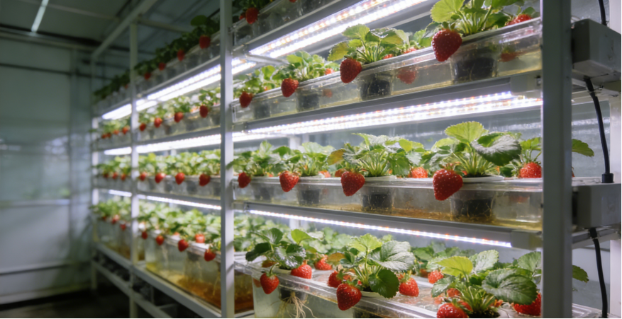 It covers multi-layer vertical planting systems and strawberry-specific DIY hydroponic modules, paired with custom full-spectrum LED lights and IoT remote control systems. It meets planting needs in different scenarios while improving space utilization rate and management convenience.